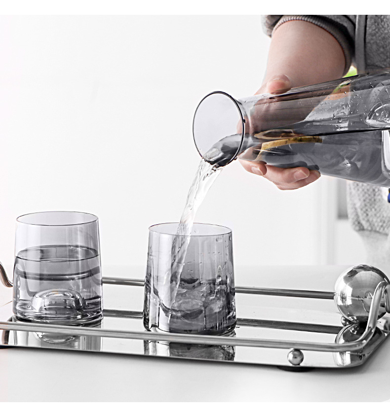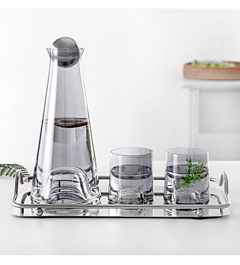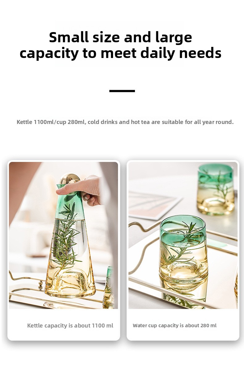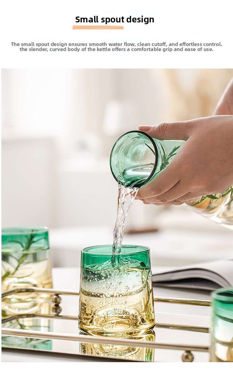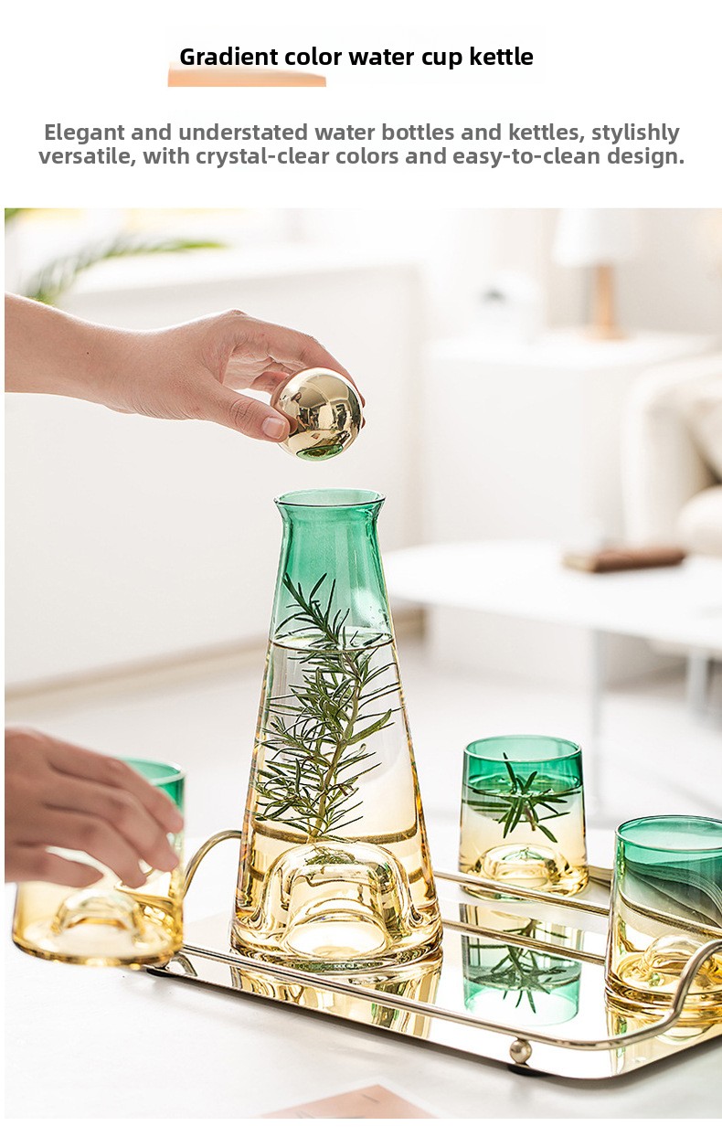 Crystal Glass Gradient Pitcher Set With Stainless Steel Lit & Cups